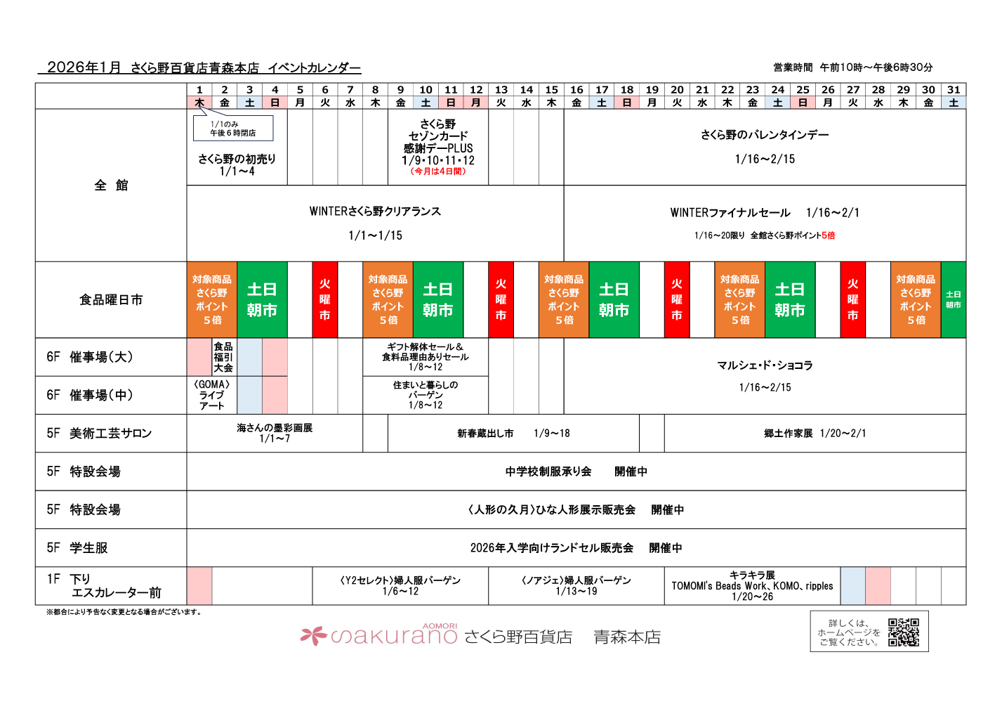 2026年1月の感謝デーは、第2金・土・日・月祝の4日間!