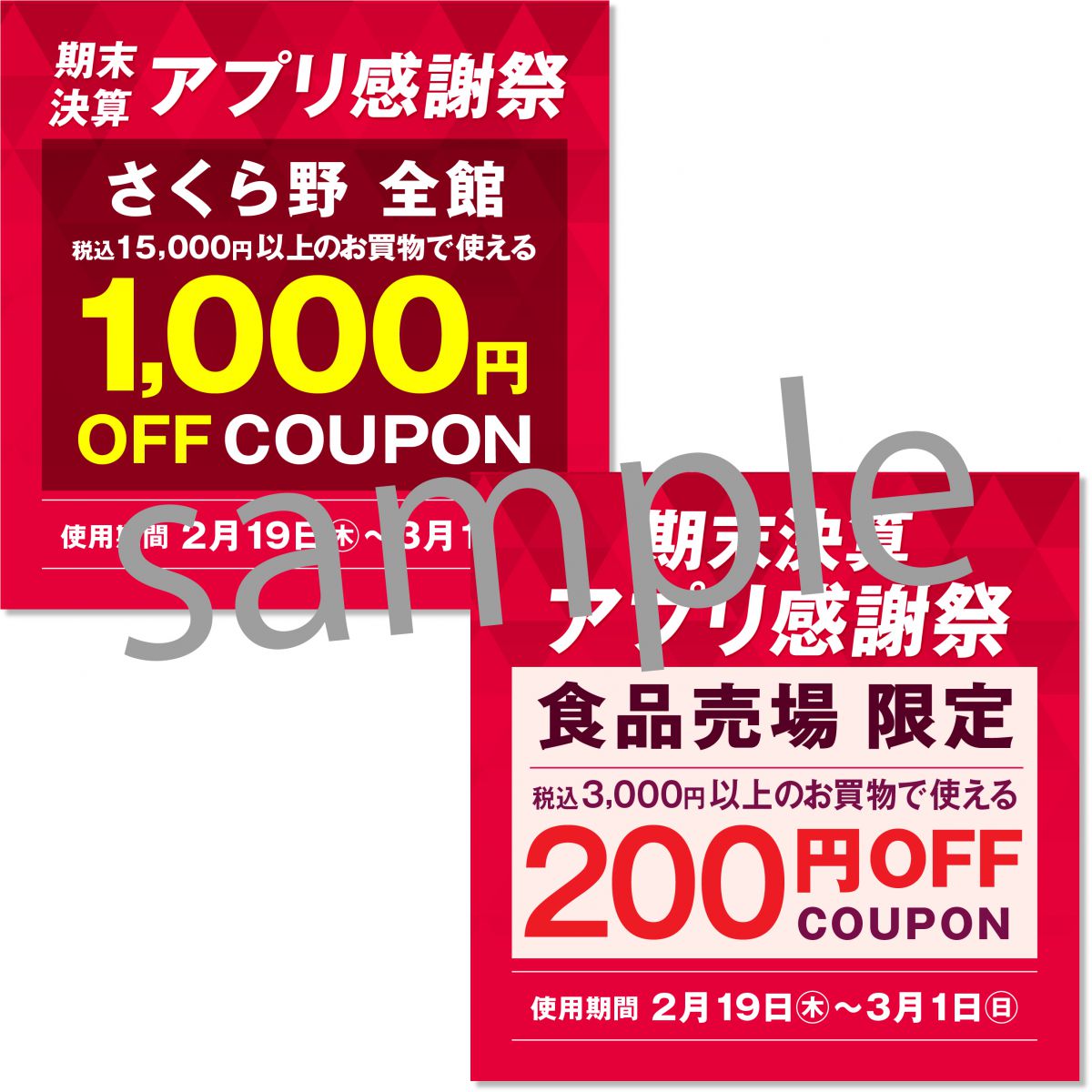 ■(食品用)地階 食品売場で[税込]3,000円以上のお買い物で使える200円OFFクーポン