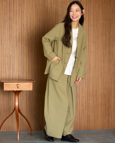 ワイドパンツのエアリースタイルを