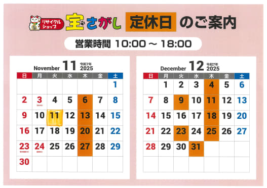 定休日:毎週木曜日、その他休業日あり(定休日カレンダーをご覧ください) - 電話番号