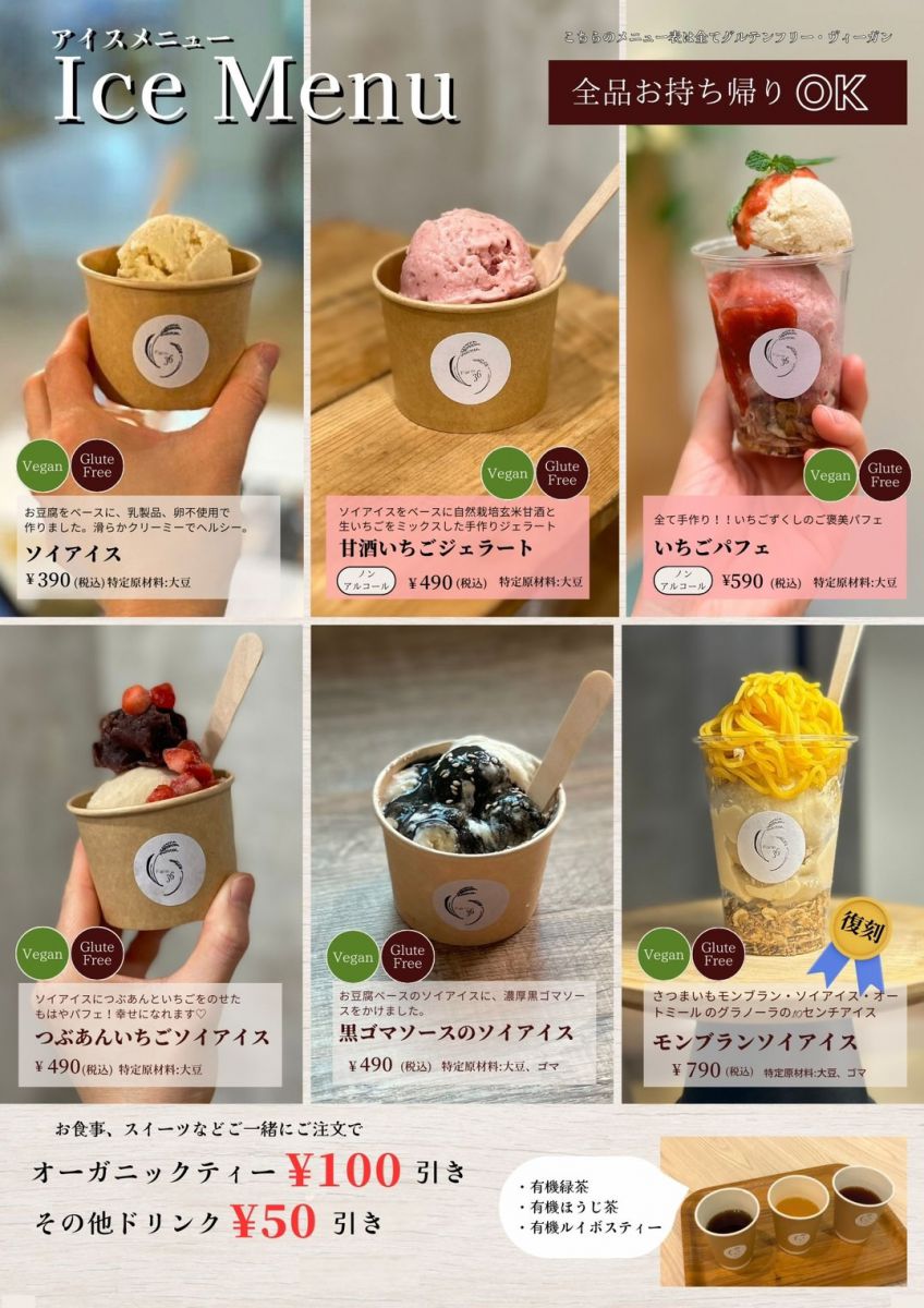 おにぎりや、大豆ミートの唐揚げ、セットのおにぎりプレートなどを提供します。