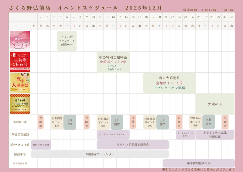 ※上記予定は、都合により予告なく変更になる場合もございます。