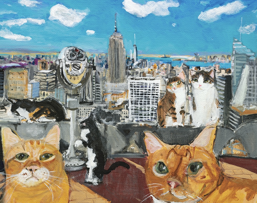 愛猫を主人公に、多彩な表現方法でのびやかに描かれる作品は、見る者を魅了して離しません。