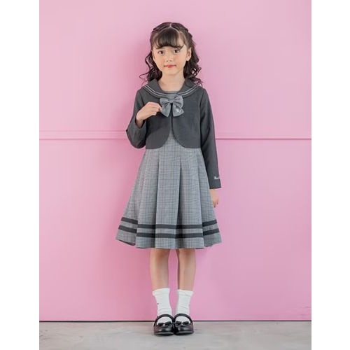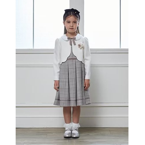 チェックワンピースとジャケットのセット。