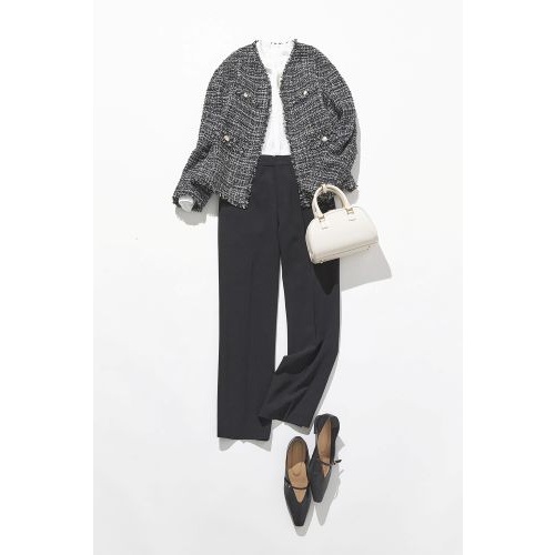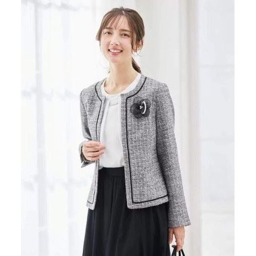 定番のツイードノーカラージャケット。
