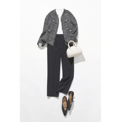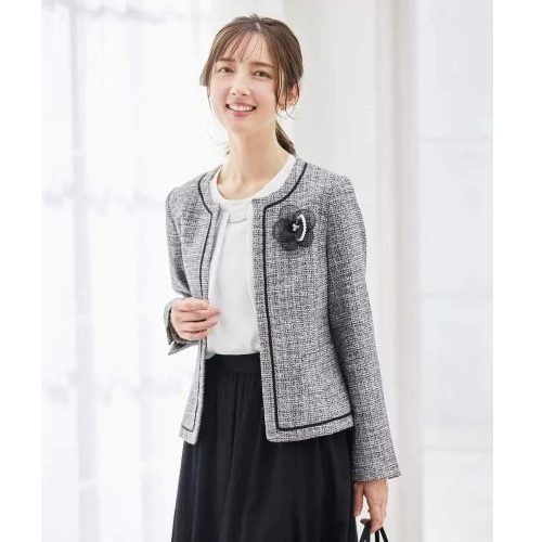 定番ツイードノーカラージャケット。