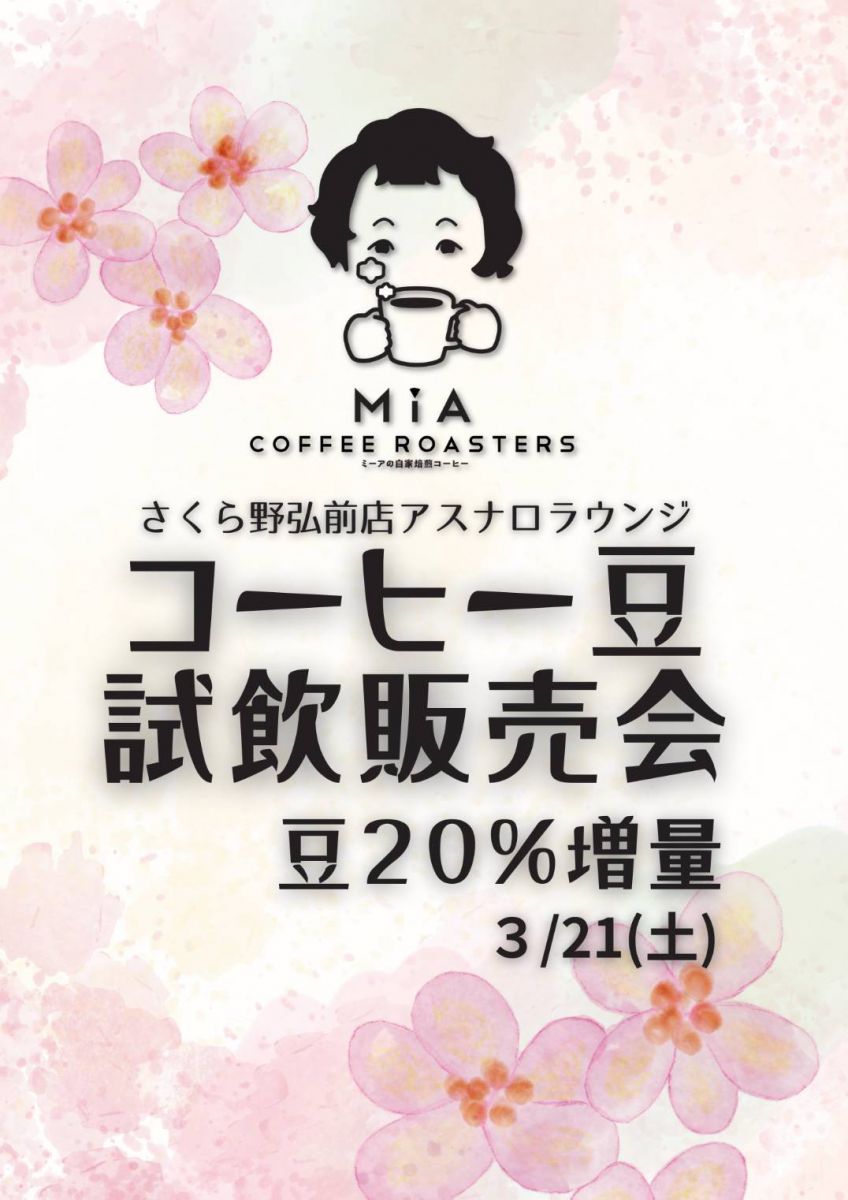 当日は1日限定でコーヒー豆20%増量!